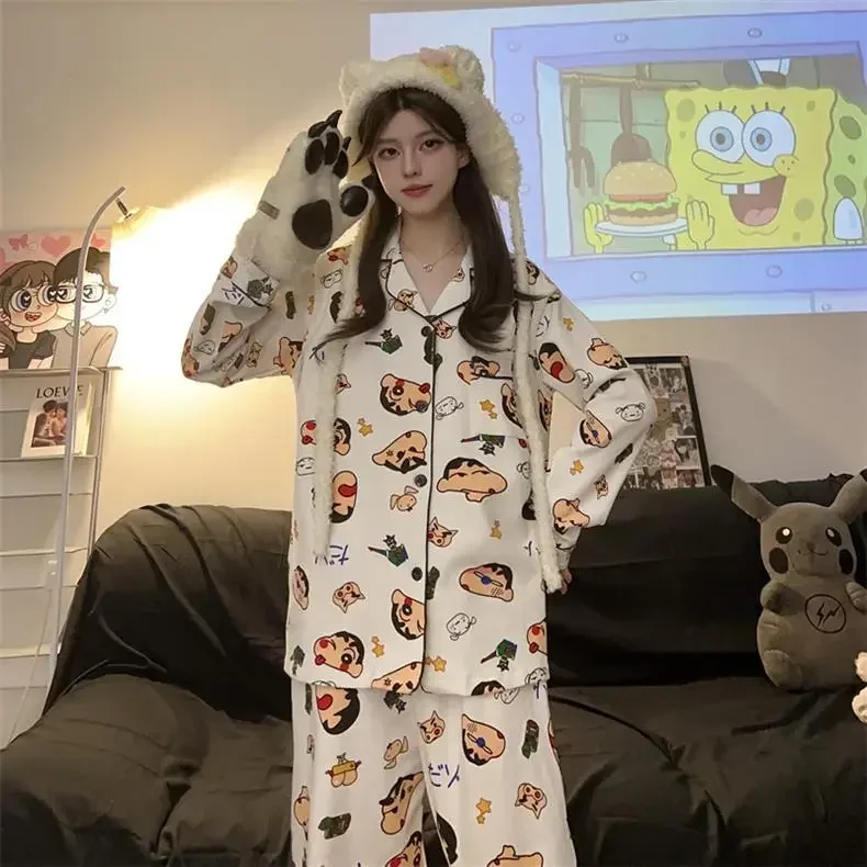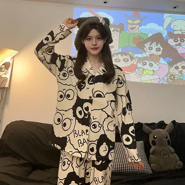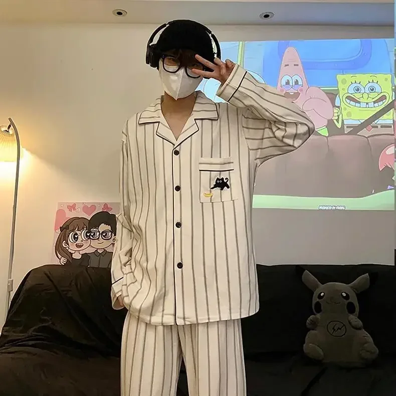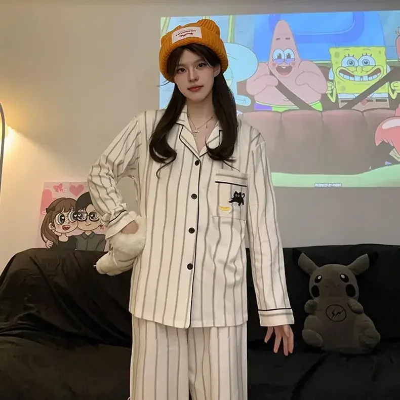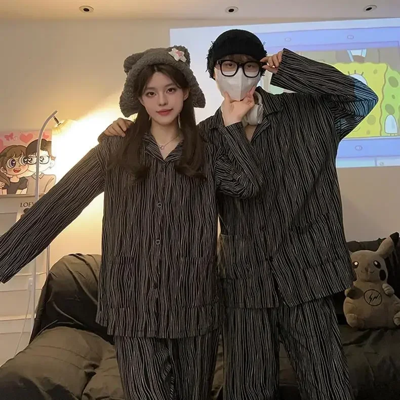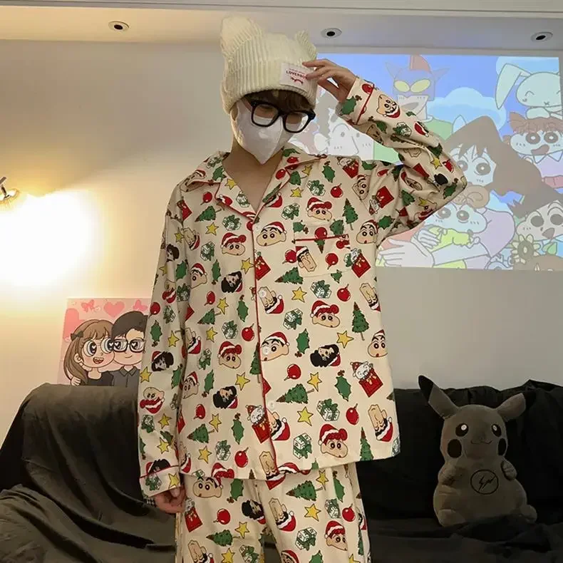 Stay cozy and stylish at home with this cartoon-themed pajama set for couples. Made from soft cotton and polyester, featuring a turn-down collar, long sleeves, and matching trousers, it’s perfect for spring and autumn lounging.