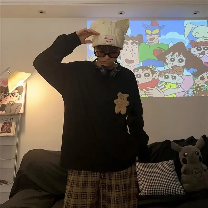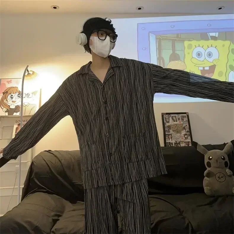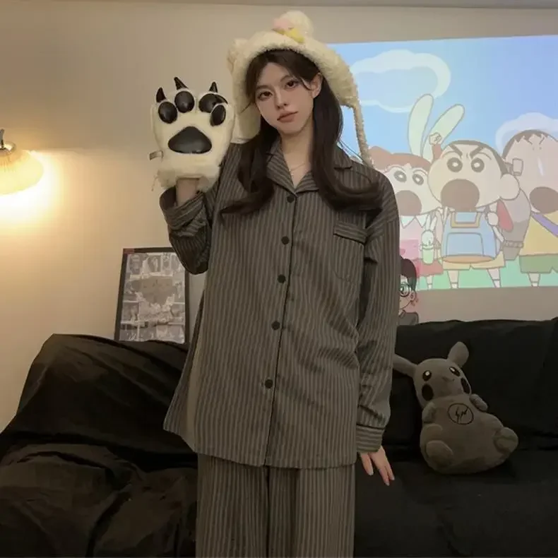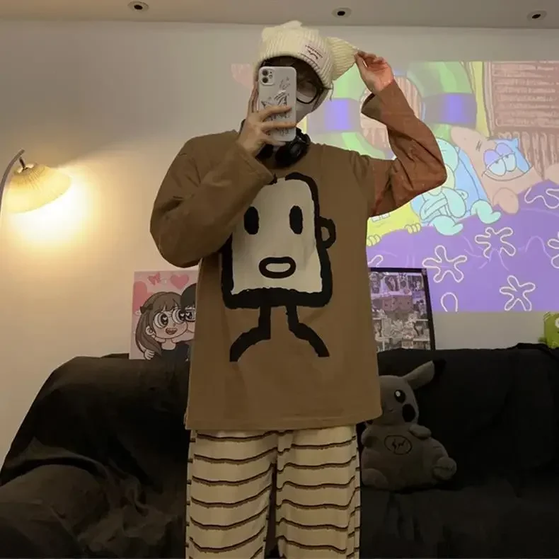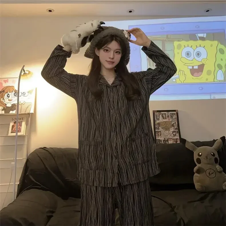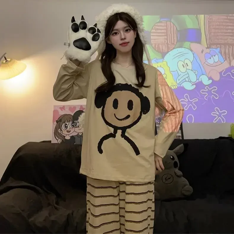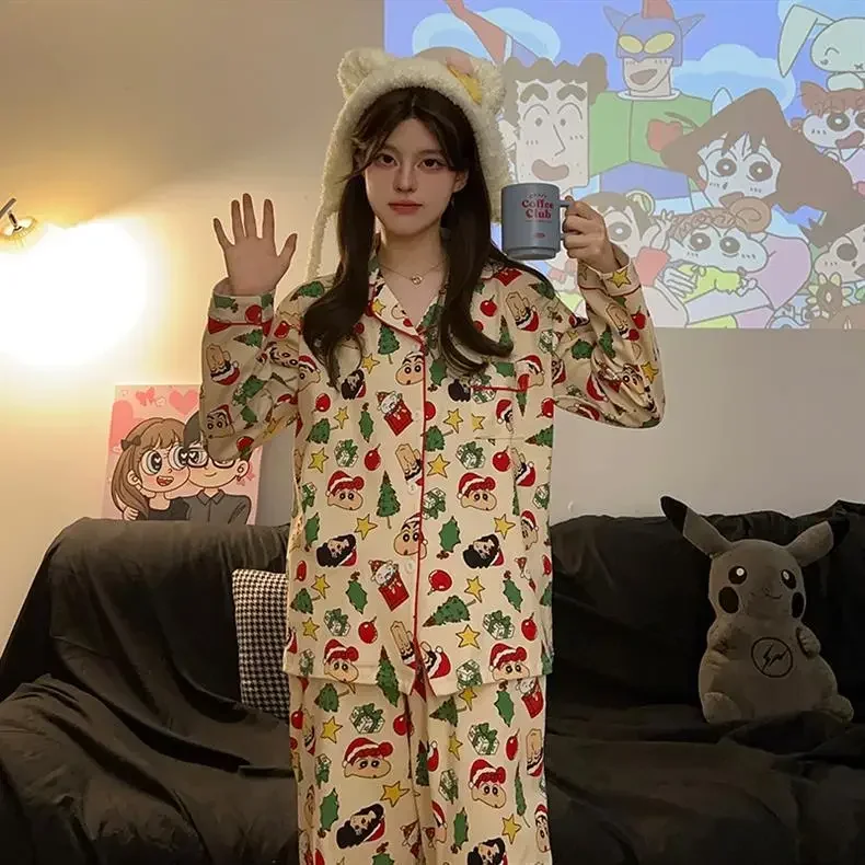 Stay cozy and stylish at home with this cartoon-themed pajama set for couples. Made from soft cotton and polyester, featuring a turn-down collar, long sleeves, and matching trousers, it’s perfect for spring and autumn lounging.